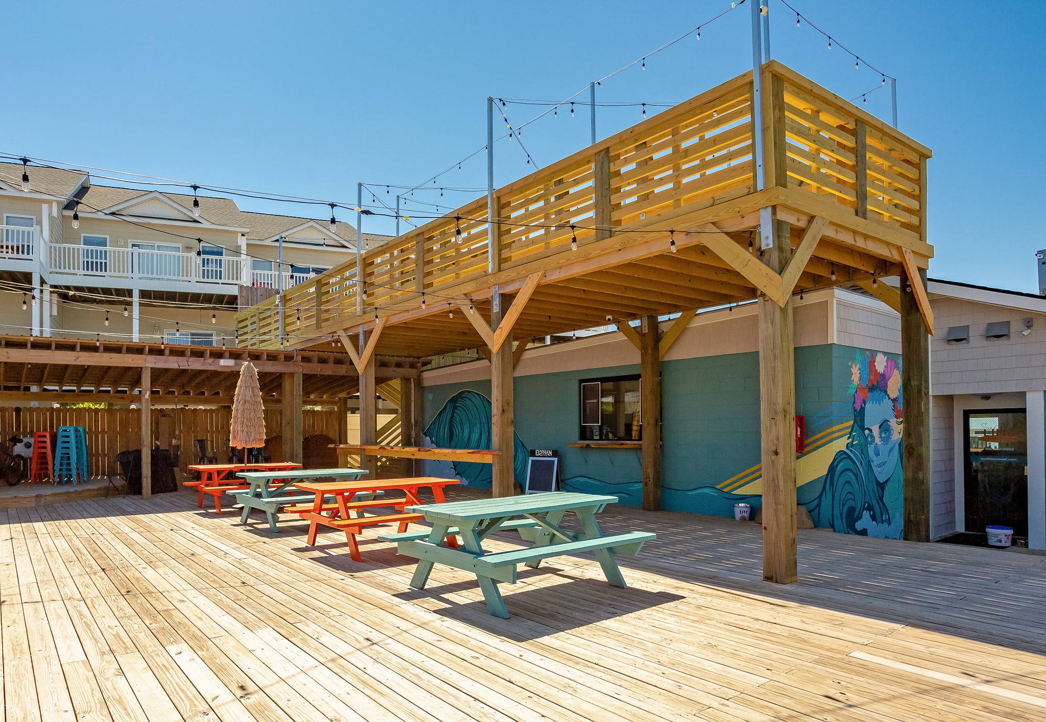 Located just between Surf City and North Topsail Beach, “The Line” boasts the biggest deck on the island featuring three stories of outdoor seating and ocean views. Join us for upscale beach dining inside, or a resort-like experience on the patio. Come for some of the best live music on the island, and stay for our specialty frozen cocktails. We are pleased to accommodate parties of all sizes and pride ourselves on creating memorable experiences for every guest.